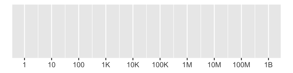 1 2demo_log10(c(1, 1e9), breaks = log_breaks(10), labels = label_number_si()) #> scale_x_log10(breaks = log_breaks(10), labels = label_number_si())