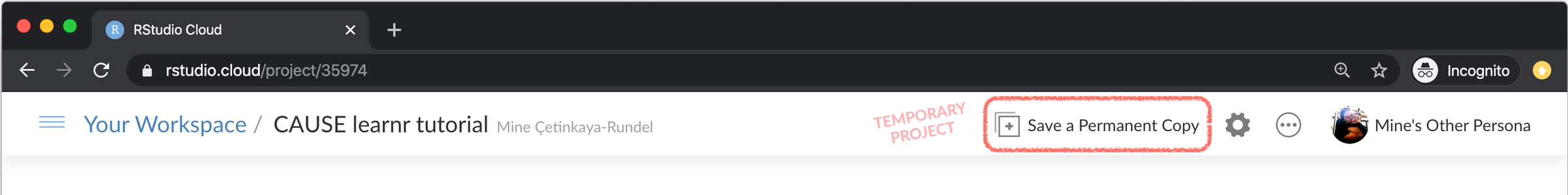 When a student goes to your shared project they’ll see a blinking red text that says “TEMPORARY COPY” and next to it is a button to “Save a Permanent Copy”.