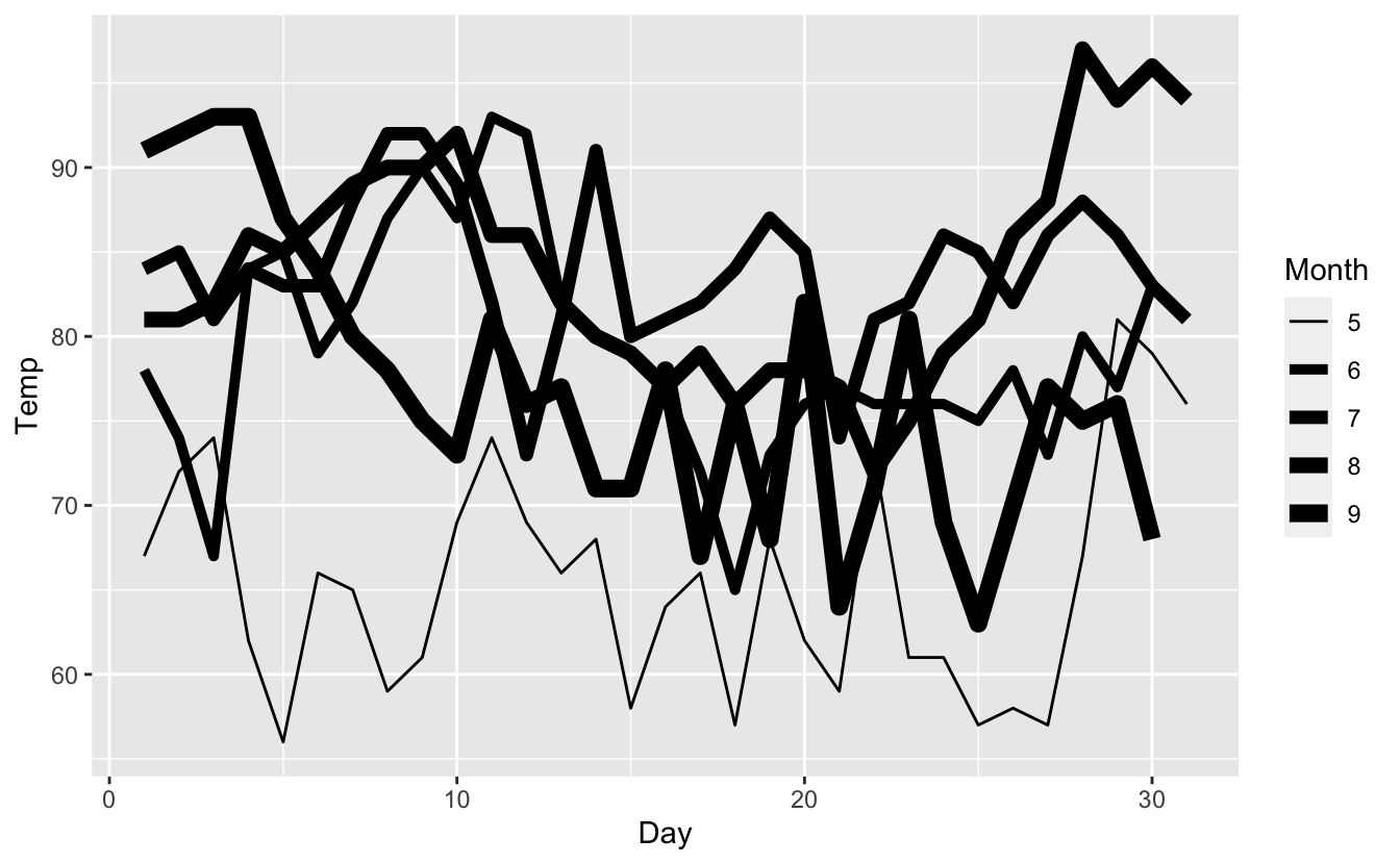 geom_line(aes(Day, Temp, size = Month, group = Month)) +
